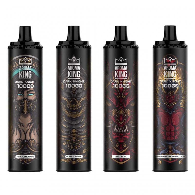 Puffs: 10000+ Puffs Battery: 1000mAh built-in (Rechargeable) E-liquid: Pre-Filled Vaping Style: Mouth to Lung Draw Activation Unique style design Slimline, Compact, and Easy to Pocket RGB Light Choice of Many Flavours Aroma King 10000 Puffs The Aroma King Dark Knight disposable vape is a compact, slim, and lightweight device that can easily be carried in your pocket or purse. It’s a premium device designed to give any self-respecting vaper more hits and purer flavor than typical disposable vaporizers. Only the best aromas with a pure, smooth taste with realistic preferences and long-lasting properties underline the premium quality of the Aroma King Dark Knight range. With a built-in 650mAh rechargeable battery, a mesh coil that allows for more smoke and a fuller flavor, and 20ml of pre-filled nicotine-free salt E-liquid, this device is equipped. The Aroma King Dark Knight will provide any user with approximately up to 10,000 puffs per device, allowing for considerably longer usage. This makes it last much longer than your regular disposable device. The LED on the underside of the device lights up with every inhalation. When the Aroma King Dark Knight device has been used up, it can be safely disposed of. How many puffs does Aroma King have? The disposable electronic cigarette from the Polish brand Aroma King offers several great flavors that you will love! It has a battery capacity of 550mAh, making it capable of delivering a long-lasting battery life of at least 700 puffs. Is Aroma King a Good Brand? The Aroma King disposable vape offers a convenient and economical vaping solution, perfect for those looking for an easy, hassle-free experience. Can you Refill an Aroma King? The Nicotine-Free Aroma King Vape is a disposable device with pre-filled pods that are discarded and replaced after use, offering a simple and hassle-free vaping experience. How do you use the Aroma King 10000? No need to worry about recharging the battery or refilling the E-liquid. Just unpack, start vaping, and dispose of the device when you’re done. Aroma King 10000 Puffs Dark Knight Review The Aroma King 10000 Puffs Dark Knight Disposable Vape boasts an incredibly powerful and long-lasting vape experience in a sleek and stylish way. Its impressive 10,000 puff capability makes it a very reliable choice for consumers in longer uses. The Dark Knight variant is well-recognized for bold and intense flavor profiles, satisfying a vaping session from start to finish. It comes with a rechargeable battery that can keep the product in continuous use by the consumer. Consistent vapor production and a smooth draw from the device make it ideal in the eyes of its users. With its premium build quality and distinctive design, this sets it apart in the disposable vape market. Aroma King 10000 Puffs Dark Knight Flavours Bad Bull Blueberry Ice Gummy Bear Lush Ice Peach Ice